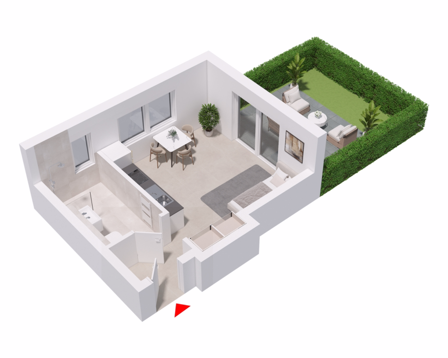 Neubau: 1-Zimmer-EG-Wohnung in Münster Hiltrup mit kleinem Garten & PKW-Stellplatz